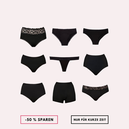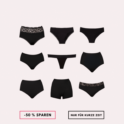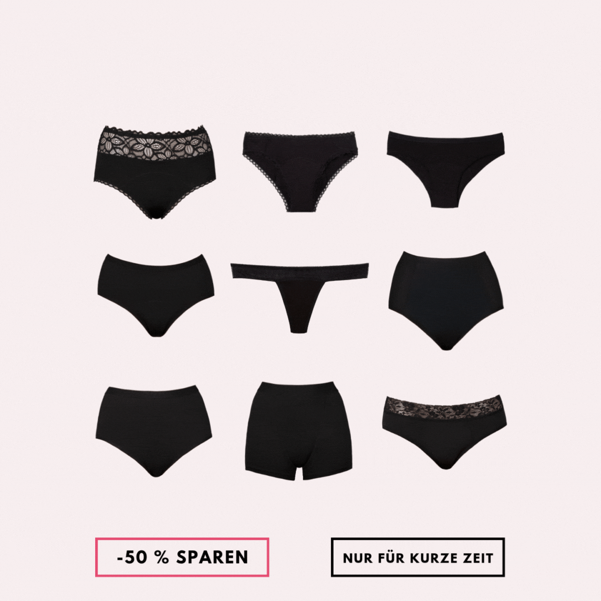 Durch die individuelle Zusammenstellung erhältst du Periodenunterwäsche, die perfekt zu deinem Zyklus passt – und sparst gleichzeitig 50 %.